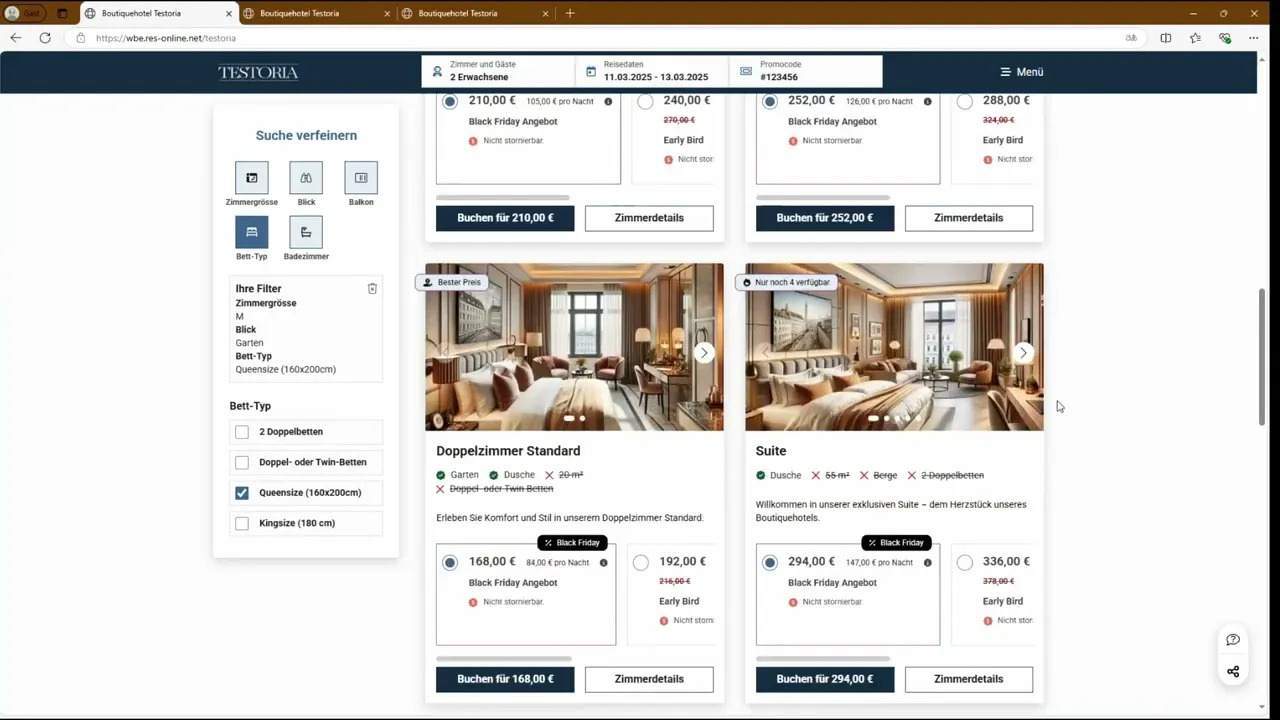 Die preiswerteste verfügbare Zimmerkategorie wird sofort sichtbar.
